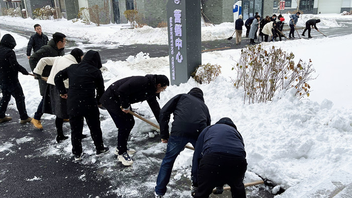 集團(tuán)黨委積極響應(yīng)市委關(guān)于《讓黨旗在應(yīng)對冰雪天氣工作第一線高高飄揚(yáng)》的倡議,自11月7日起連續(xù)兩天組織黨員,并帶動團(tuán)員、廣大員工在航空產(chǎn)業(yè)園區(qū)開展積雪清掃行動,充分發(fā)揮黨員先鋒模范作用,以主力軍、突擊隊的實際行動踐行共產(chǎn)黨員的光榮使命。